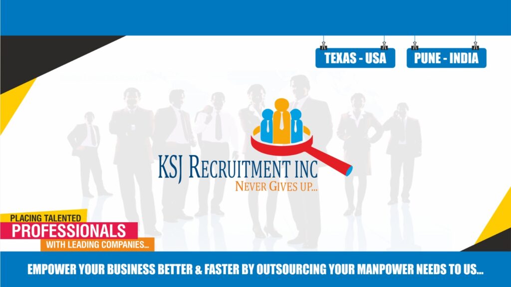 Since our inception in 2015, KSJ Recruitment Inc. has been empowering businesses to build high-performing teams and helping talented professionals find their true potential. With registered offices in Texas {USA} and Pune {INDIA} we bridge talent gaps across borders with agility, integrity, and deep industry expertise.